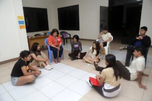 Una vez más, el arte fue el centro de las actividades y con la participación de 15 estudiantes de las diferentes Unidades Educativas, se realizó el primer laboratorio de creación artística en el que se hicieron libretos para el desarrollo de una performance para mostrar cómo están los y las jóvenes de Villamontes que se presentó en el teatro municipal de la casa de la cultura de la Gobernación.