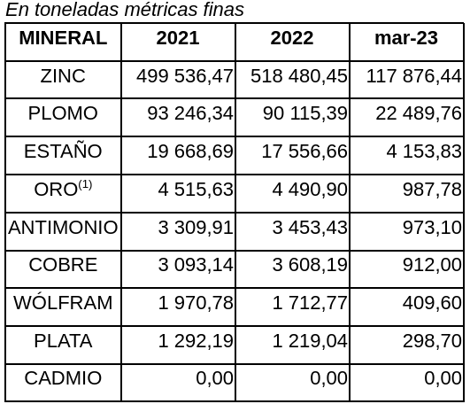 En nuestro país, se ha registrado una producción significativa, con 19,668.69 toneladas métricas finas en 2021, 17,556.66 toneladas métricas finas en 2022 y 4,153.83 toneladas métricas finas hasta marzo de 2023.